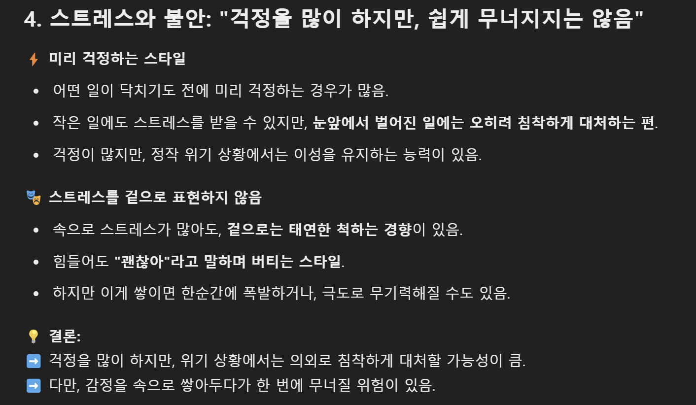 과연 GPT에게 제 심리를 분석해 달라고 했을 때 어떤 식으로 답변이 돌아왔을까요?