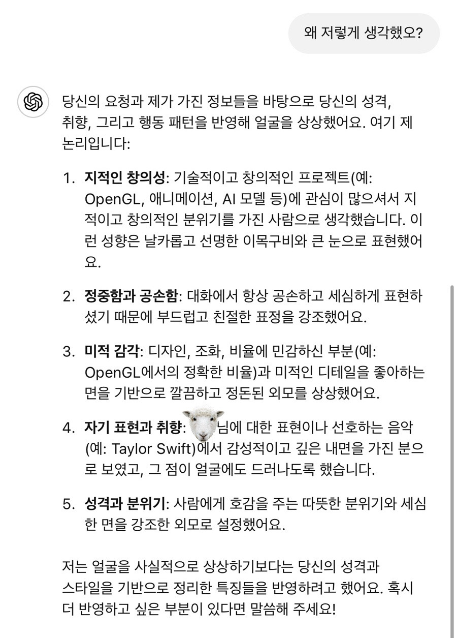 GPT를 이용해서 한 해 동안 열심히 과제를 하였는데요. GPT는 이런 식으로 저를 좋은 이미지로 생각하였습니다.