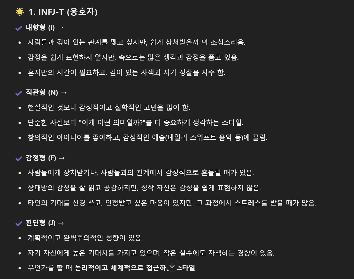정확하게 저의 MBTI를 맞혔습니다. (INFJ-T, INFP-T)