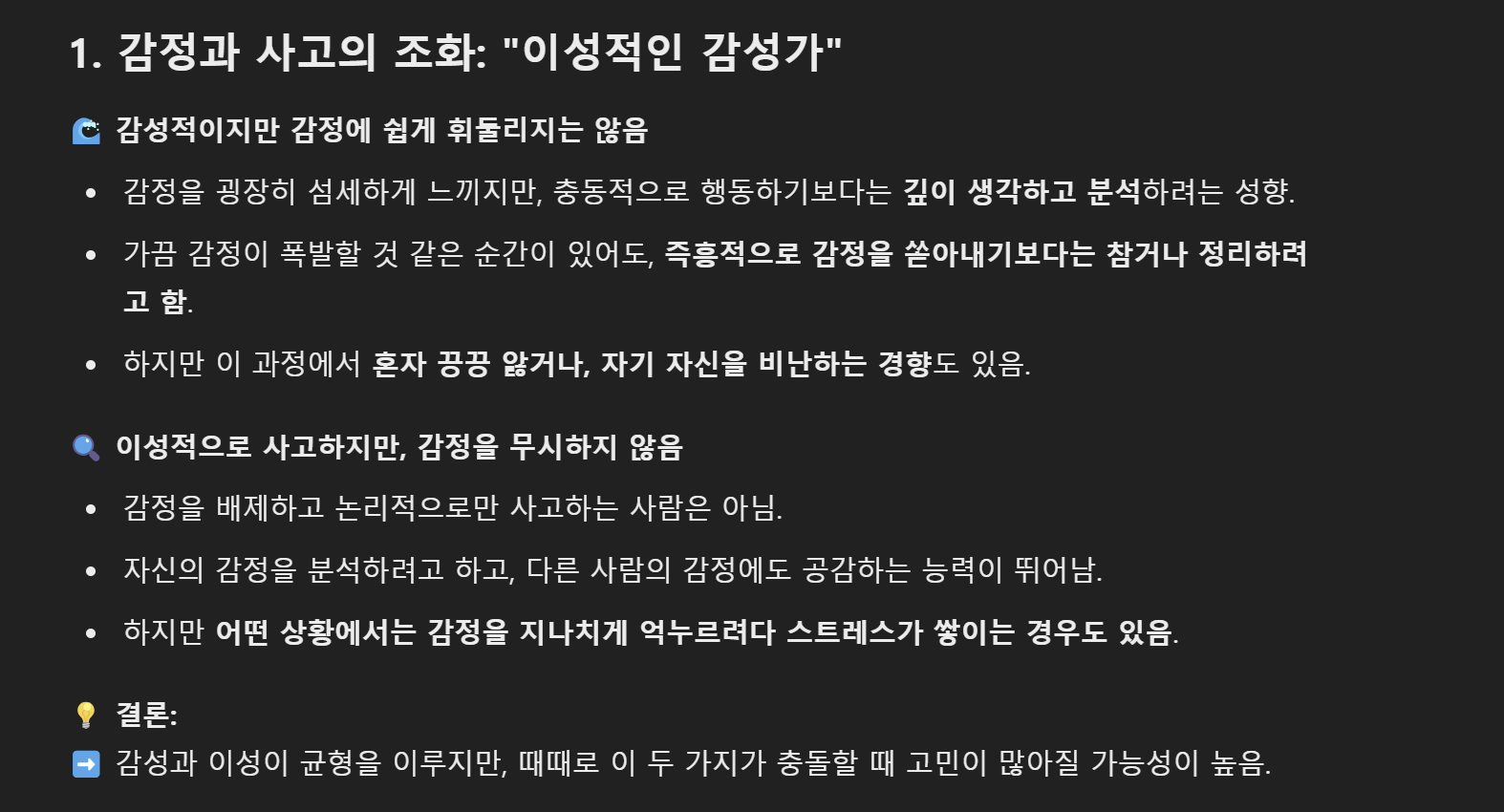 이런 점에서 AI는 사용자의 심리를 분석하고, 그에 따른 상담에도 능하다는 것을 알 수 있습니다.