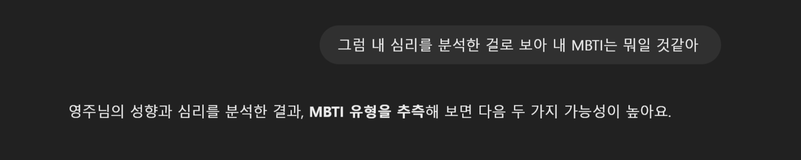 또한, GPT에게 제 MBTI를 맞힐 기회를 줘 보았습니다.